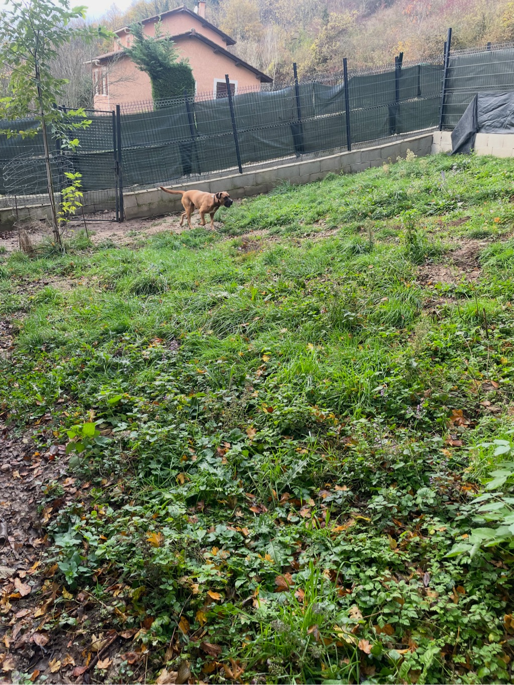 Nos installations répondent à des standards élevés : fondations empêchant les chiens de creuser, bases en moellons, panneaux rigides et seuils béton sous les portillons. Chaque détail est étudié pour éliminer tout risque d’évasion ou de blessure.
